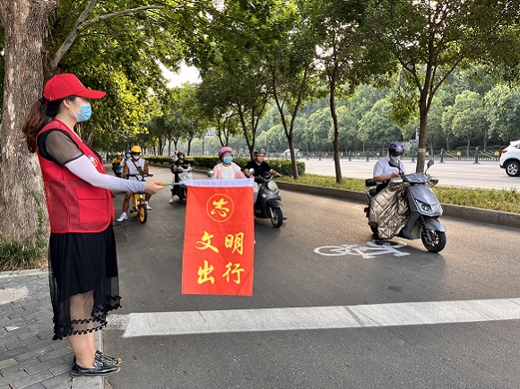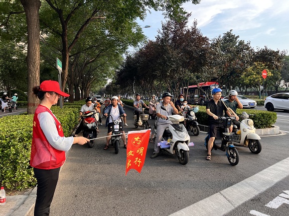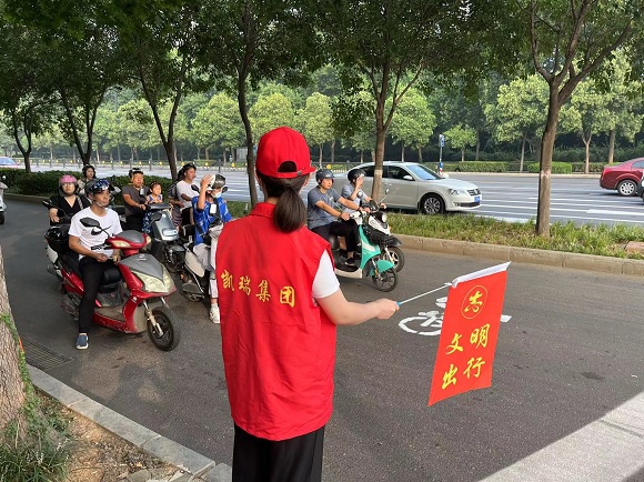 為大力弘揚志愿服務精神,倡導市民文明出行的交通理念,推進洛陽市關于全國文明典范城市創建工作,中共凱瑞公司支部積極組織支部黨員、入黨積極分子開展文明交通勸導志愿服務活動。2022年8月12日,在早晚的上下班交通高峰期,支部安排8名志愿者帶上指揮旗、穿上紅馬甲,前往開元大道學府街口開展文明交通勸導活動。