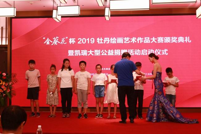 凱瑞集團(tuán)公益捐贈(zèng)啟動(dòng)儀式暨“金葵花”杯2019牡丹繪畫頒獎(jiǎng)典禮舉行 “洛陽(yáng)地脈花***宜,牡丹尤為天下奇”,牡丹寓意吉祥富貴、繁榮昌盛,是洛陽(yáng)十三朝古都的精神象征。千百年來(lái),其天姿國(guó)色更為歷代詩(shī)人、書畫家稱頌。 8月6日上午9時(shí)30分,凱瑞集團(tuán)大型公益捐贈(zèng)活動(dòng)啟動(dòng)儀式暨“金葵花”杯2019牡丹繪畫藝術(shù)作品大賽頒獎(jiǎng)典禮在國(guó)寶·鉑瑞酒店隆重舉行。 △ 現(xiàn)場(chǎng)圖 本次活動(dòng)由中共洛陽(yáng)市委宣傳部主辦,洛陽(yáng)日?qǐng)?bào)報(bào)業(yè)集團(tuán)、洛陽(yáng)市文聯(lián)、凱瑞集團(tuán)等單位聯(lián)合承辦,共頒發(fā)八大獎(jiǎng)項(xiàng)164幅獲獎(jiǎng)作品,凱瑞集團(tuán)領(lǐng)導(dǎo)、洛陽(yáng)日?qǐng)?bào)報(bào)業(yè)集團(tuán)領(lǐng)導(dǎo)、河南省美術(shù)家協(xié)會(huì)顧問(wèn) 王 繡、所有獲獎(jiǎng)人員等受邀出席本次頒獎(jiǎng)活動(dòng)。 △ 洛陽(yáng)日?qǐng)?bào)報(bào)業(yè)集團(tuán)領(lǐng)導(dǎo)致辭 首先,洛陽(yáng)日?qǐng)?bào)報(bào)業(yè)集團(tuán)領(lǐng)導(dǎo)致辭發(fā)言,洛陽(yáng)報(bào)業(yè)集團(tuán)對(duì)凱瑞集團(tuán)此次頒獎(jiǎng)典禮及其給予公益事業(yè)的大力支持表示崇高的敬意和衷心的感謝,并宣布“金葵花”杯2019牡丹繪畫藝術(shù)作品大賽頒獎(jiǎng)典禮正式開(kāi)始。 頒獎(jiǎng)典禮之后,凱瑞集團(tuán)董事長(zhǎng)王新立先生上臺(tái)致辭,他詳細(xì)闡述了凱瑞集團(tuán)“服務(wù)社會(huì)、回報(bào)社會(huì)“的企業(yè)宗旨,并強(qiáng)調(diào)“教育是社會(huì)發(fā)展的大事,也是振興國(guó)家的希望所在。凱瑞自1986年創(chuàng)立以來(lái),先后為福利院、貧困學(xué)生捐款,建立教育基金,積極投身社會(huì)公益事業(yè),重視慈善工作,未來(lái)將持續(xù)開(kāi)展各項(xiàng)社會(huì)公益活動(dòng),為洛陽(yáng)市公益事業(yè)的發(fā)展做出更大的貢獻(xiàn)。” △ 凱瑞集團(tuán)董事長(zhǎng)致辭 本次比賽的所有參賽作品,由凱瑞集團(tuán)出資30萬(wàn)元公益認(rèn)購(gòu),后續(xù)將進(jìn)行公益拍賣,所得善款用于扶貧濟(jì)弱,助力公益事業(yè)。 △ 捐贈(zèng)儀式現(xiàn)場(chǎng)圖 下一階段,凱瑞集團(tuán)將攜手大賽組委會(huì),在貧困縣嵩縣山區(qū)籌建20座“凱瑞希望書屋”,并資助一批貧困大學(xué)生,圓他們的大學(xué)夢(mèng)。公益從不是臨時(shí)和短期的,凱瑞希望通過(guò)本次活動(dòng)呼吁全社會(huì)一起參與公益事業(yè),讓更多的人受益。 △ 現(xiàn)場(chǎng)圖 儀式后,出席本次活動(dòng)的各位領(lǐng)導(dǎo)一同移步到國(guó)寶大廈一樓,現(xiàn)場(chǎng)品鑒王繡老師經(jīng)典繪畫作品及本次“金葵花”杯獲獎(jiǎng)的164幅牡丹繪畫作品,現(xiàn)場(chǎng)更有廣大書畫愛(ài)好者學(xué)習(xí)觀摩。 △ 現(xiàn)場(chǎng)圖 自今日起,獲獎(jiǎng)優(yōu)秀繪畫作品將在國(guó)寶大廈一樓國(guó)寶·紅瞰城市展廳持續(xù)展覽一個(gè)月,歡迎各界朋友親臨品鑒! △ 現(xiàn)場(chǎng)圖